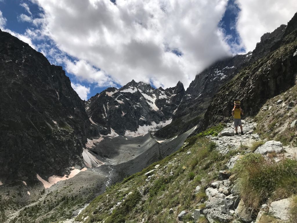 We managed to hike all the way to Glacier Blanc (2400m-ish) with said four-year-old (taking a short drive up to the parking lot at Pré de Madame Carle from Ailefroide, and continuing on from there on foot). There was much gentle encouragement along the way, and a fair number of other small humans trying the same (rather gruelling at their size) trip up. Even though it is considered one of the most popular destinations in the park, the trail was not particularly busy. The views were wonderful, and showed off a wilder, rougher version of the Alps than what I had seen further north the summer before. There is a wonderful river at the foot of the glacier, and a perfect place for a packed lunch. If you continue past the glacier base (although the trail becomes a bit tougher for a child, but not impossibly so, in this final section), you can make it all the way to Refuge du Glacier Blanc (2542m, bring cash).