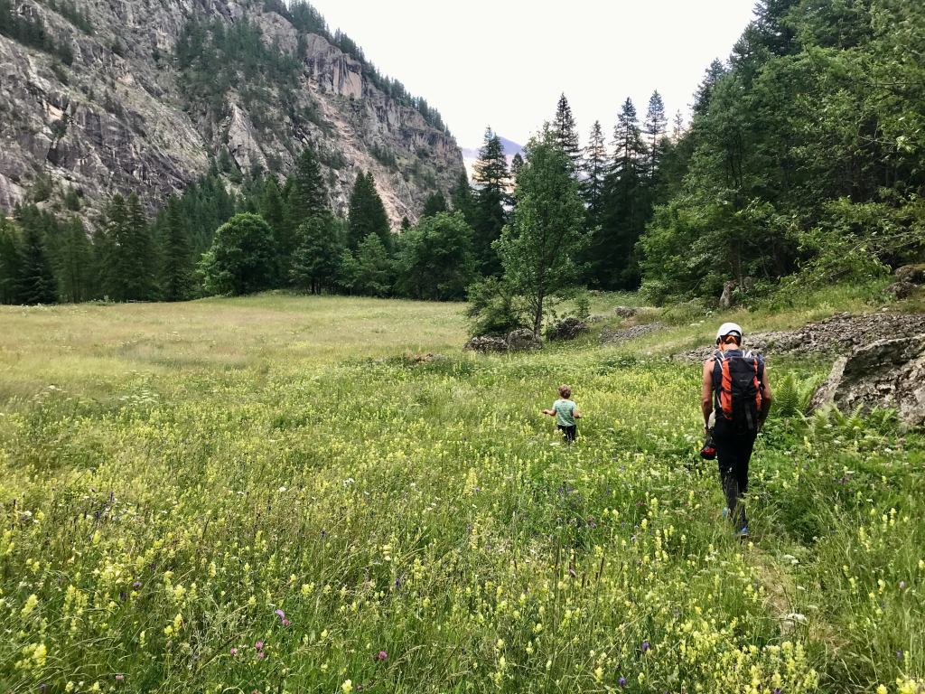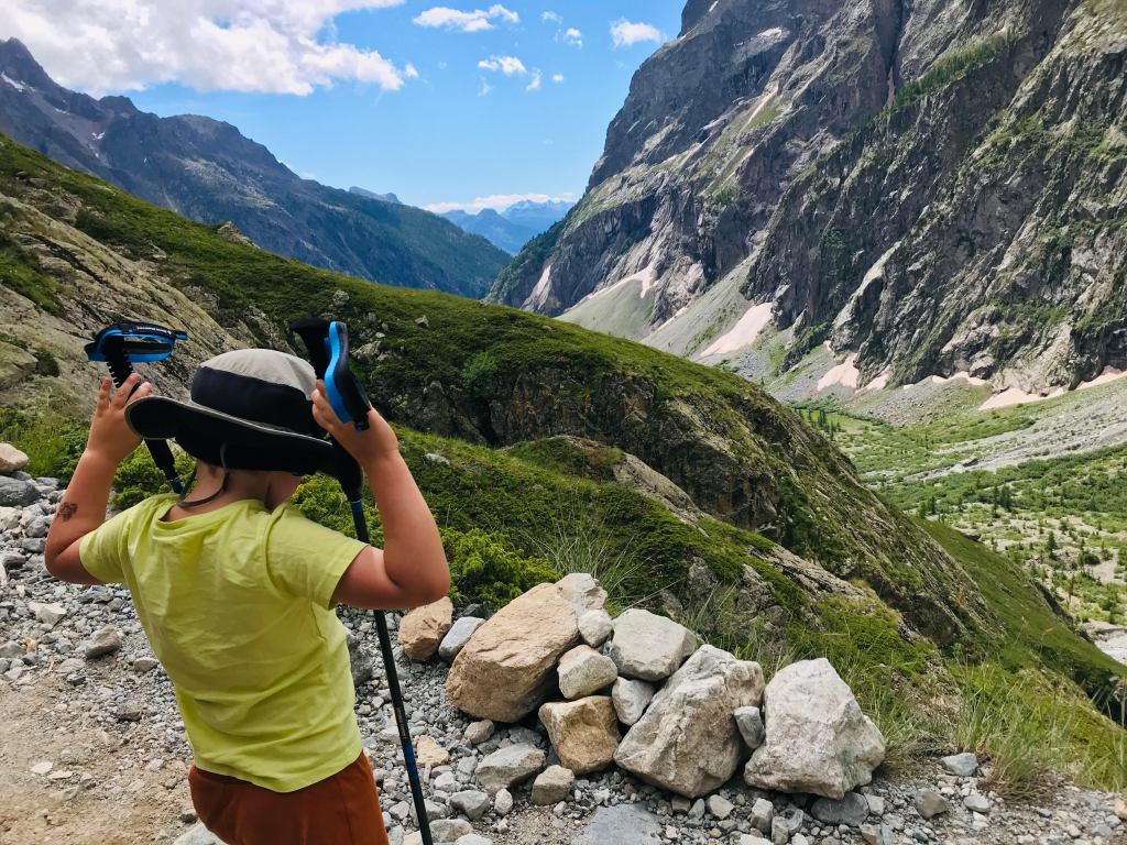 After 13 hours of being glued to a sticky car seat, just about anything outdoors will seem amazing. But, that sentiment of awe first felt when stepping out into the cool, fresh air of Écrins National Park did not (at all) turn to dust after shaking off 1,039km in a a car – towing a caravan – with a four-year-old. While the park was intended as a convenient stop-over point before driving to Chamonix, it became the highlight of a two-week mountain adventure. We found a beautiful campsite under a glowing mountain at Camping Ailefroide and proceeded to sample as many walks, trail runs, and crags as we could in a few days. A few highlights below.