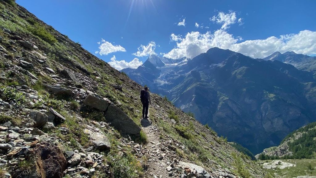 Hikers will find dozens of blogs detailing the route. I’m including here highlights from each day and some photos that will likely entice most people (without a fear of heights) to run to the Alps. Each day followed a similar routine of going up and over a col (usually with the peak at around 2800m, and we did manage a double col day once) and descending into the valley, before another big climb the next day. Most days, we walked somewhere between 5-7 hours. On longer days, we managed to walk almost 10 hours. After a while, the heavy pack stops to matter and you just swim around your own head, pushing your feet up or down the mountains and sometimes stopping to enjoy the breathtaking views.